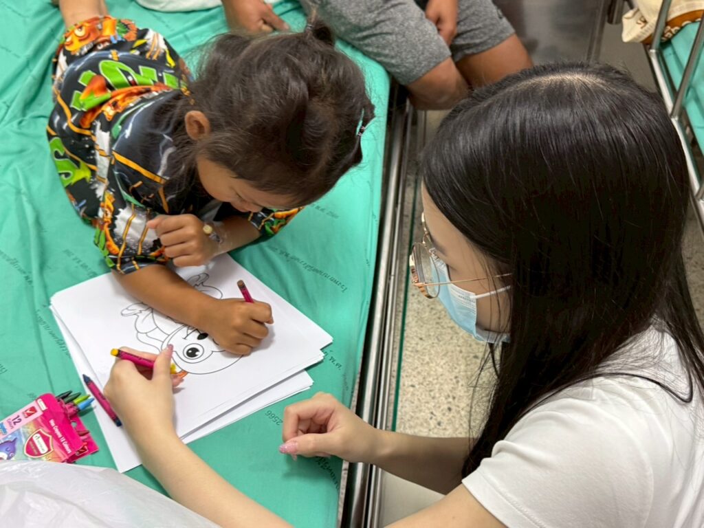 The mission began with comprehensive briefings and hands-on preparation as students packed Smile Bags filled with soap, toothpaste, mirrors, and combs to help young patients prepare for surgery. The following day brought them face-to-face with families during the screening process—entertaining anxious children through games and creative performances while decorating the children’s ward with colorful balloons to create moments of joy. They conducted meaningful interviews with volunteer doctors and dentists, gaining insights into surgical procedures and patient journeys, including a poignant conversation with a burn survivor who had suffered an electric shock.